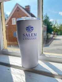 Powder coat finish. Matte white with Salem College logo and seal in blue.